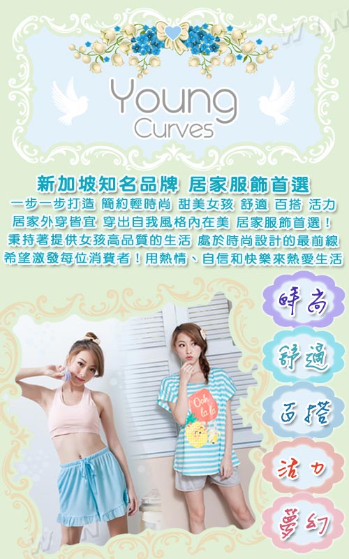 惠超用Young Curves自新加坡知名居家睡衣品牌,秉持著提供女孩高品的生活,因此我品的研究、和量予高度重,以造及生高格的品。我不客的需求,保我永於尚,和生活方式的最前。打造舒又尚的休居家生活。