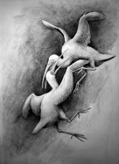 已破碎的手骨有裂成半的上臂骨可看出,忍者曾激烈的「肉搏」;科家也,忍者也利用翅膀保幼子或是尚未孵化的蛋。