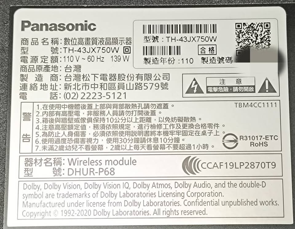 43 4K UHD HDR 智慧 Panasonic TH-43JX750W LED液晶