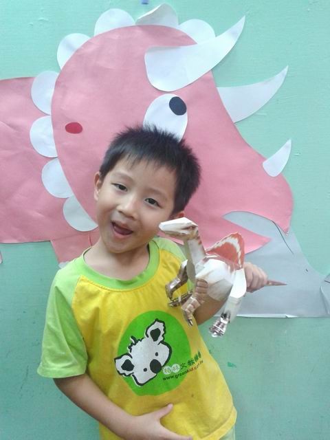 翰翰手上的恐模型是老做的 我得老也很辛苦 些堂的教具都是利用下班做的 幼稚老不好呀....