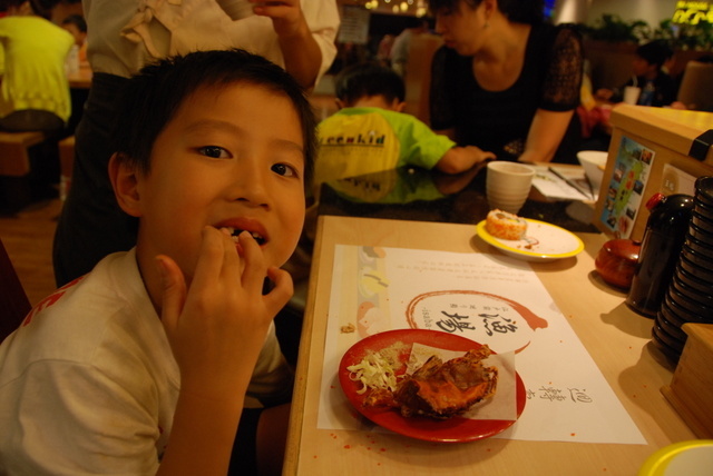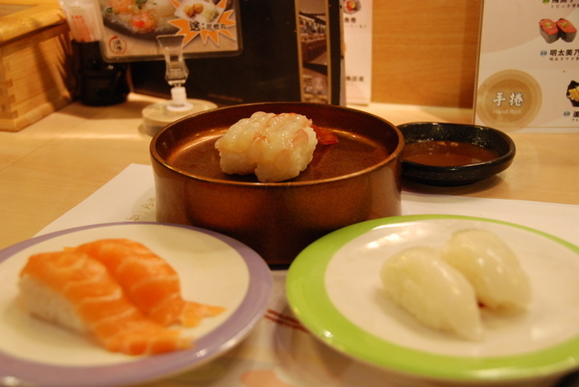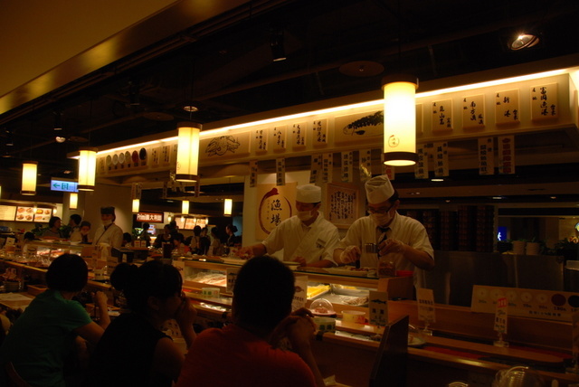 因在百公司的美食街 所以地方不大 客人的坐位就著主 然後眼前就一排的 著各式各的日本料理 喜甚就自己拿