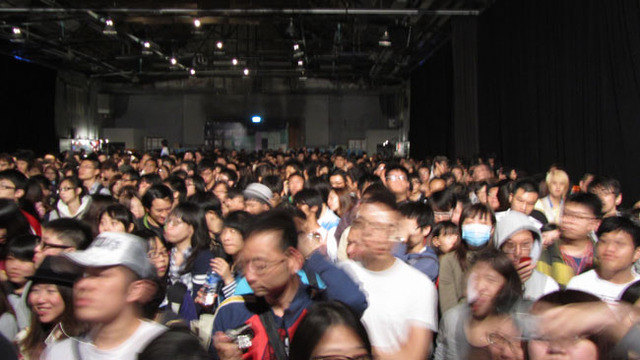 知道嘛,《色》晚上八才唱,我四到,前方已排了至少二十位歌迷了;站在我前面的一男女朋友(是夫妻、是兄妹???)香港而,只能在唱歌;站在我後方的伍,廊底一路延排去,超2/3的人都得站在雨中排呢!