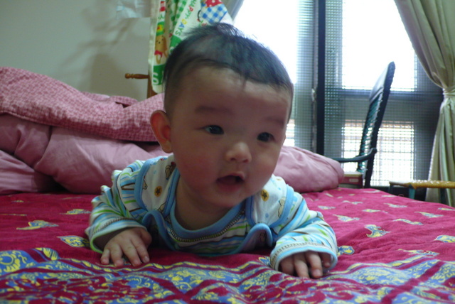 小小孩「趴」在床上,促使他翻身,小小的作,可是藏著一。,小兔咪:「最初,他不翻也有能力翻,很生。他大一,翻又有能力翻,他始得是新、好玩的!」