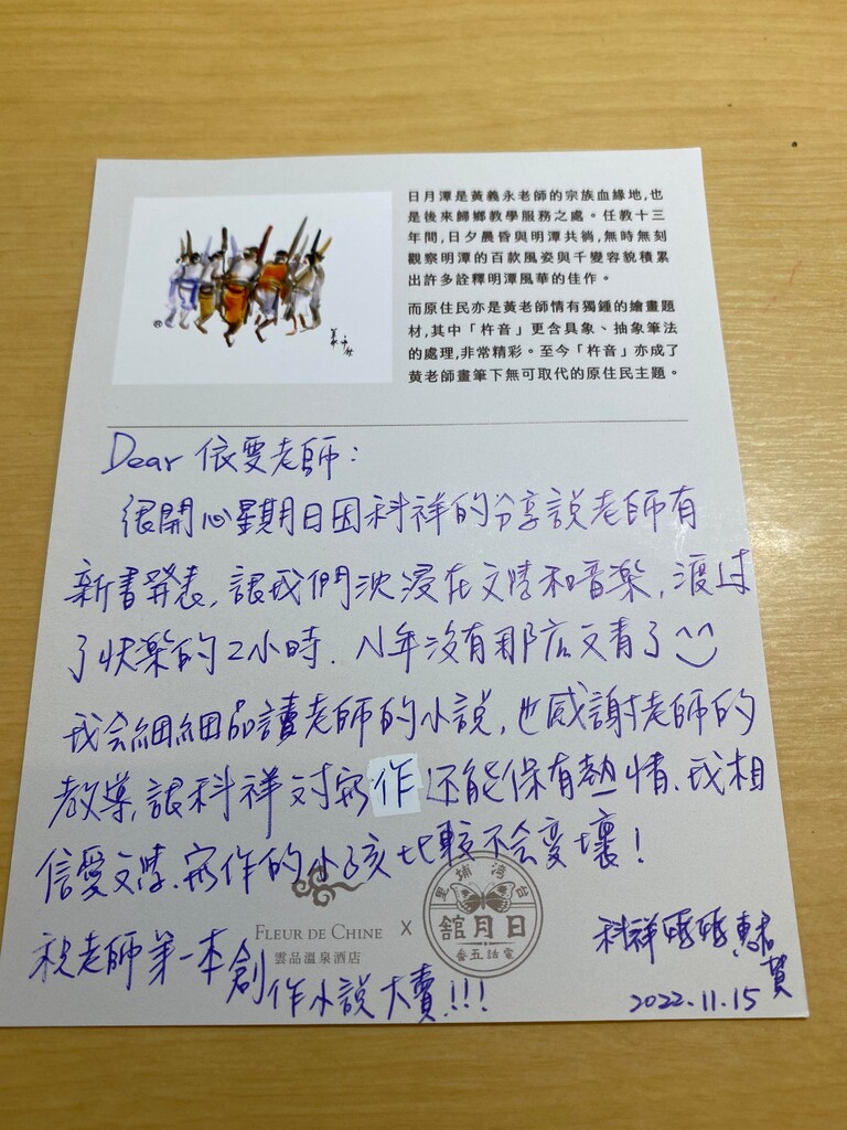 收到息,我比感,文字果真是我在世所能有的最美妙的、永不褪色的物了,子瑜意她精心的文送予我,我果真是最幸的小作者了!也子瑜特地豪奢添彰化名「治文具房」的卡片,和新竹教室的三位老分享自己的生活下祝福句,送上一束雅的不凋花我祝,……在太太破啦!