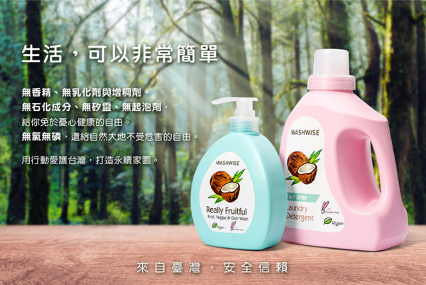 的洗更是境大手,洗後的水到可被微生物分解且境害的「灰水安全」,包材容器用40%再生塑料底落源塑行,全境台生低送生的碳足,甚至自我要求取得PETA「物」+「素」,主登於福部食署「食品安全」及「化品品」大登平台,代表安全、忍高格的公程透明成分,些都是「明洗WASHWISE」一路走持的高品,也大洗重新知,洗友善境,被善待的境也我和平共存。