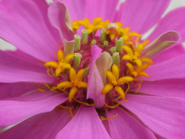 花: 前端著生花,外是匙形的舌花,只有雌蕊。中心管花,兼具雌蕊雄蕊,有瓣和重瓣,花色繁多。