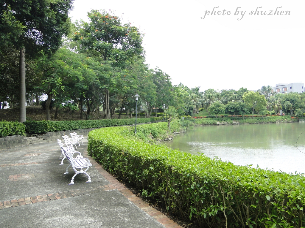 湖塘周大部份植以矮灌木 ,修剪有度,形成安全的矮。