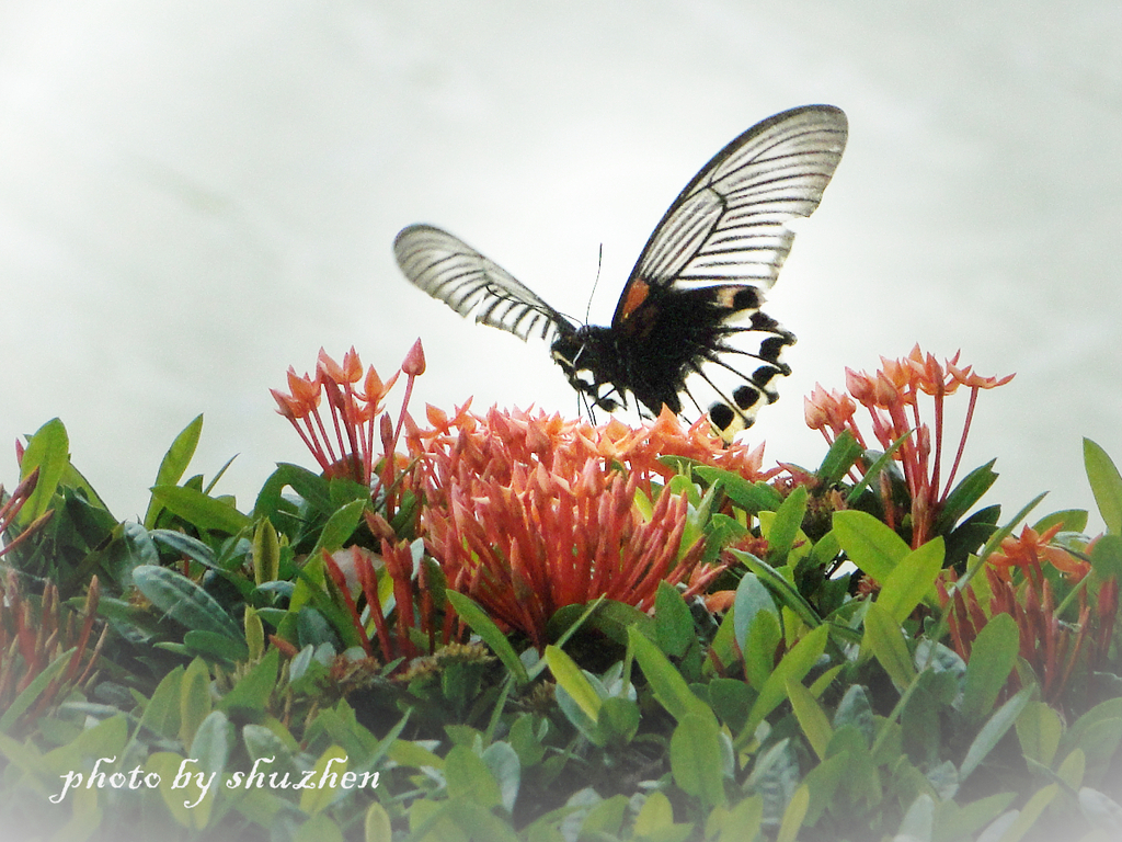 而後已被我忘的翠竟然被了,我走拍蝴蝶花草,了大半湖塘,很意外的停憩在下低垂的枝上 。