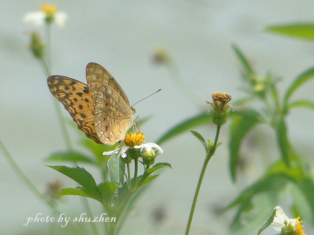 蹲在矮干旁,透空格窗看著湖塘泥地上一小撮大花咸草引多蝴蝶舞,著湖水背景,的景不是意能得。蝴蝶是很常的弄蝶、小灰蝶、蝶,以及短停歇的豹斑蝶,著周物的不同,我仍是拍得愉。