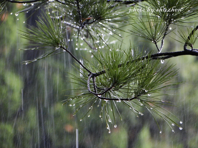 月前一也是下著雨的天那一天我跟著先生去到三常去的一休憩店家很拍的自己倚在拍著屋旁那棵雨中的五松…… 底下裁切加利