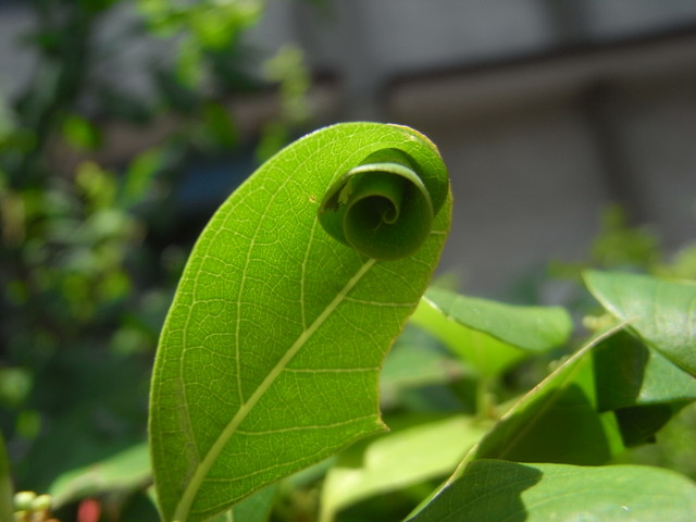 : 互生;柄 0.3~0.6 公分;片近,,倒卵形至形, 1~5 公分, 1~3.5 公分,先端而有小的凸尖,基部楔形,全,上面色,下面白色,中肋色。