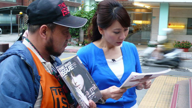 刊19年的英大(The Big Issue),2011年4月愚人天,在台行中文版刊。本最大的特色,是透街友(Homeless)售,一本100元,街友每一本可50元,希望藉著逐定的收入,弱族群取得固定居所,重拾自信尊。