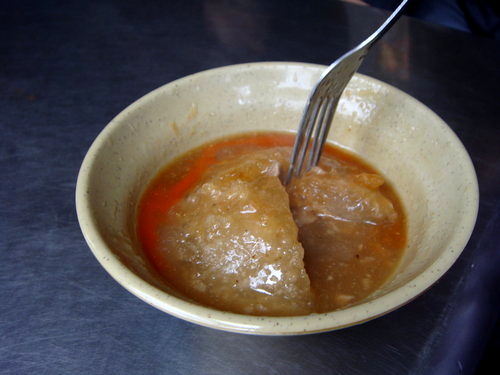 面有加一片蛋喔...皮炸的酥脆,汁甜甜的很喔咬一口的感,我,肉不是我有趣的食物