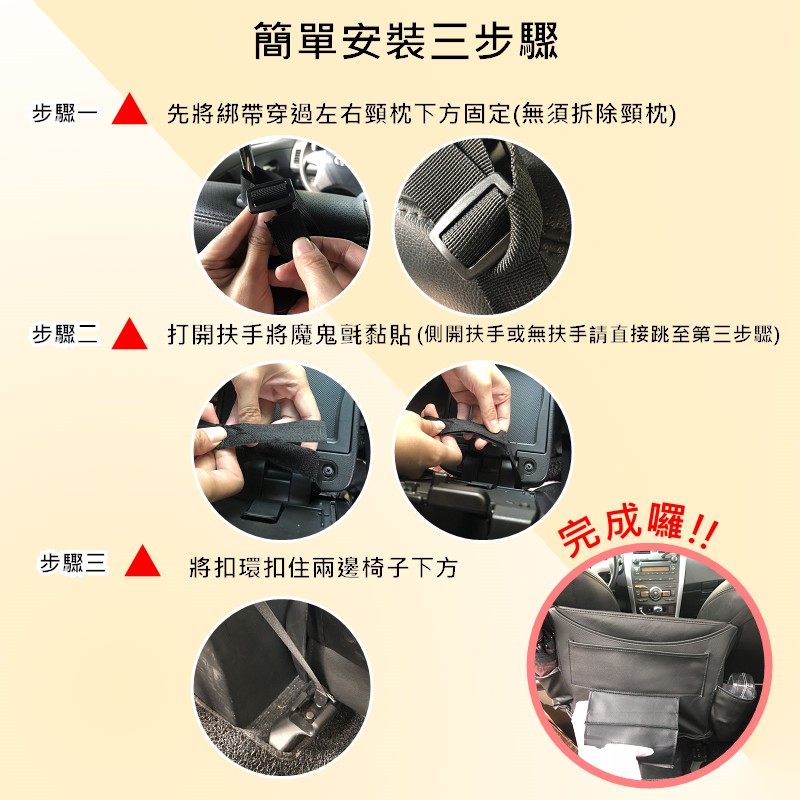 ●安、善用空、巧收、感皮革提升感!!特皮革椅置物袋,久耐用不易破,美又用!!