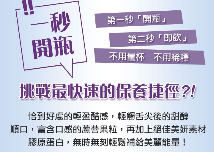 果美妍醋有效合了造醋及水果的富滋味,瓶即不需稀,地充活力美妍感!
