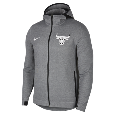 Chicago Bulls Nike Dri-FIT Showtime 男款全長式拉鍊 NBA 連帽上衣溫暖有彈性、觸感柔軟,場上場下均舒適無比。此款上衣從正式場上熱身連帽上衣汲取靈感。