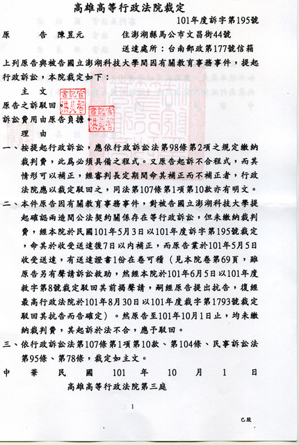被告台北高等行政法院法官秋、斌、金等反格事查限,行回告人解聘再案, (水)