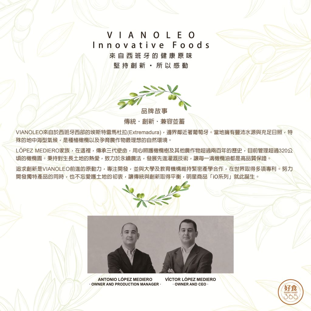 iO系列iO系列是VIANÓLEO的典代表之作。iO特初榨橄油,精大品:地受推崇的稀有原生品曼莎尼.卡莎蕾尼(Manzanilla Cacerña)