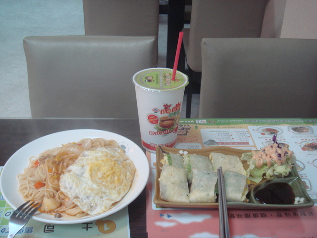 早餐依然要吃的很盛,才有力面今天的挑。蔬菜蛋、板加蛋、大冰奶。