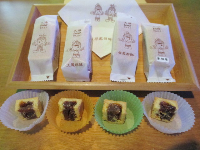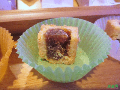 得四口味都在,然要先快,店家切好的梨酥,依各口味