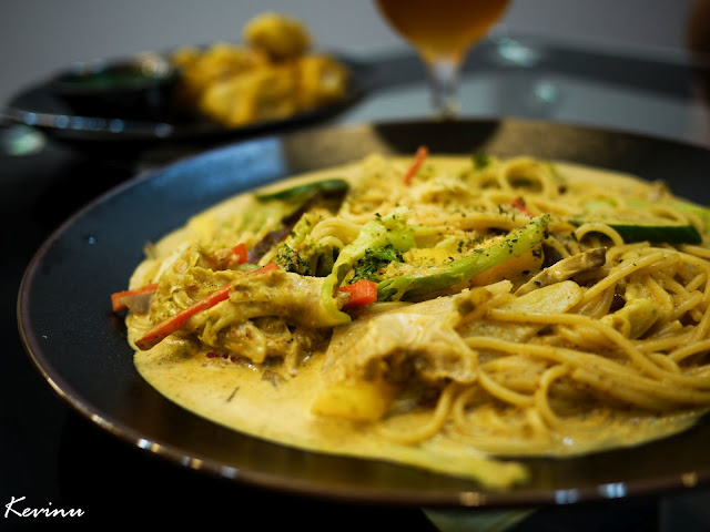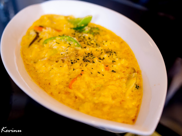 重口味的一道,仍以奶油白底,感起司的感,除此之外有鼻而的沙茶香,人的一道,口味偏,熊得他相南洋格,