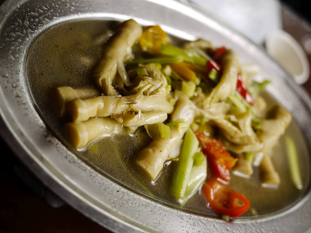 最先上的是清蒸蔗苗。何蔗苗?一的法,就是甘蔗心,甘蔗最幼嫩的部位,不可惜蔗苗有些少,反倒是季的子很多,此道菜起清新淡雅,微脆爽口清甜的感。一口,美甘甜,不油不,具水的一道菜。
