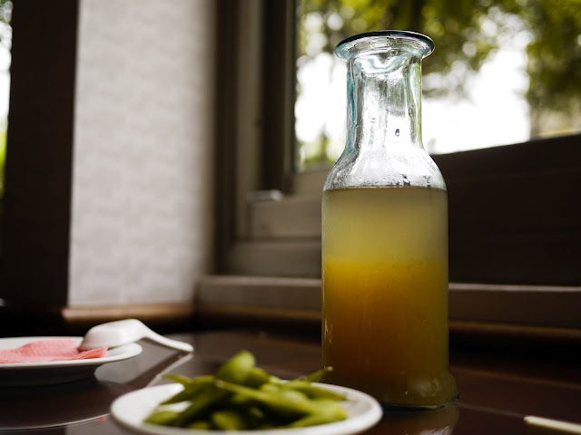 始菜,服生便拿一大瓶的水果醋任君。在外早已走到口乾舌燥,大汗的二人,拿起瓷杯品,暑全消。色沁的水果醋,有酸度的口感,但又不至於,好的程度,人得家餐相大方又心。
