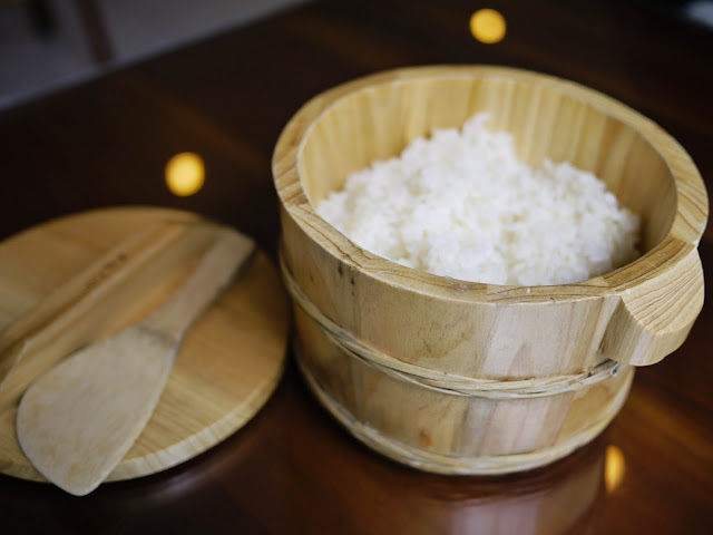 白有什好介的?可小看家餐的白,光是的器具,是吸引目光焦的地方—用小木桶,附桶及木杓。不禁我想到吃白的日本人,常究米的光感、度、粘度都恰到好,在日本餐吃是一件很幸福的事情,木桶正也表示喜白的重—至少在外上。打木桶是粒粒分明的白及小米混合而成的米,起隔外奇。不或已放一段,白有乾。