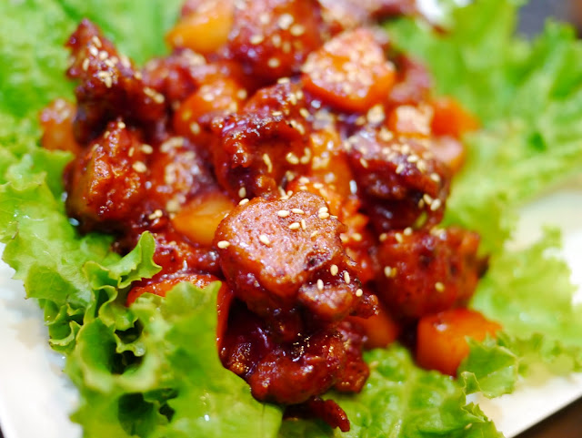 京都排骨。下的一道菜。人的素排骨,炸後用特手工糖醋味,非常有嚼感,香味酸甜口感皆郁,很不食指大的下菜。