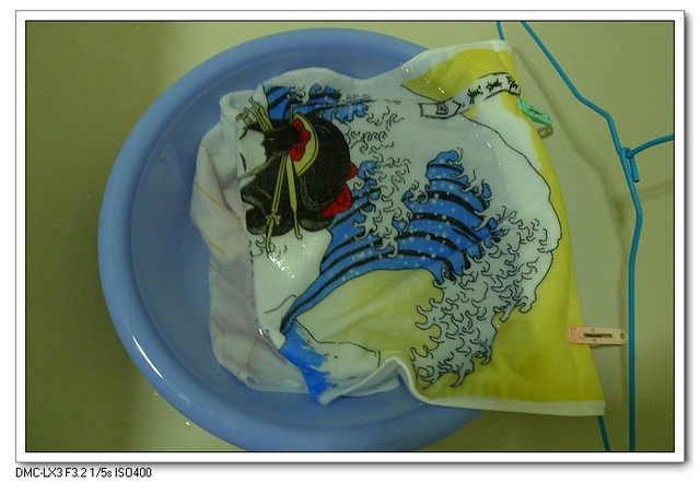 是真的耶 ~ 毛斤浸了水之後 和服的色竟然退掉了 ~