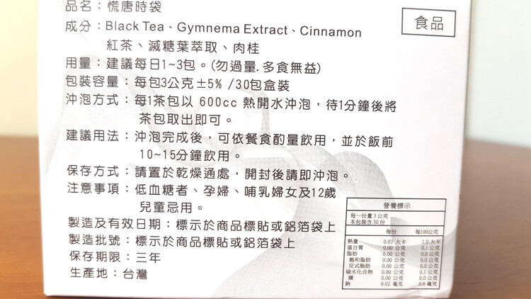 一包泡600~1000cc水,一分後茶包取出後可分成早、中、晚前10-15分酌量用.建每天1~3包,勿量,多食益.低血糖、孕、哺乳女及12以下童忌用.