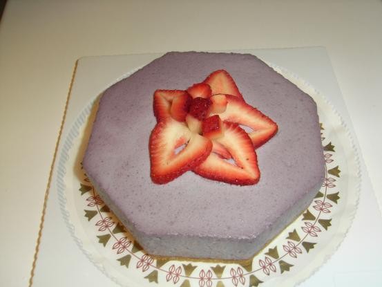 5) 芝士倒入蛋糕模,雪一晚後模即成,最後以士多啤梨作。