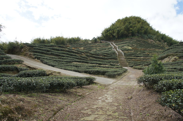 走不到五分,眼前赫然出十分清楚的步道,穿行在竹林、茶中。