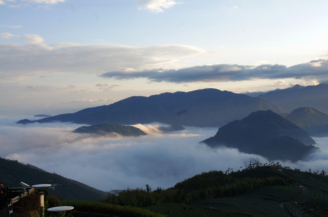 陡爬五百公尺之後,有一道路茶隔 ,我在道路上海,越清楚了。