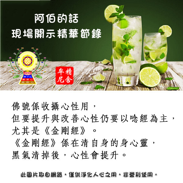 另一方面,也要回思考,我在做一件好事,人我那、、恐或嫌的表情行,我真的需要那在意,一再去回害自己?《六祖》:「於境上心不染,曰念;於自念上常境,不於境上生心。若只百物不思,念除,一念即死,受生,是大。道者思之。」修行切忌不要攀,自己要有智慧心、判力和定力,莫易被他人的言影。