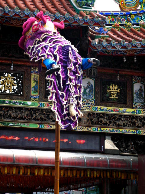 不原的慈啥好在迎神,看到了得的舞。人利害,用一根竹竿及肚皮表演人舞。