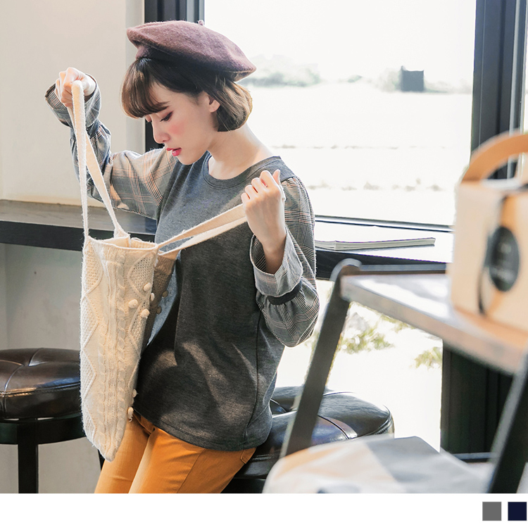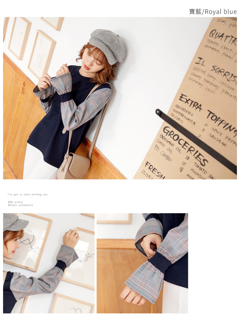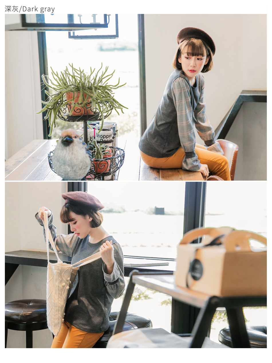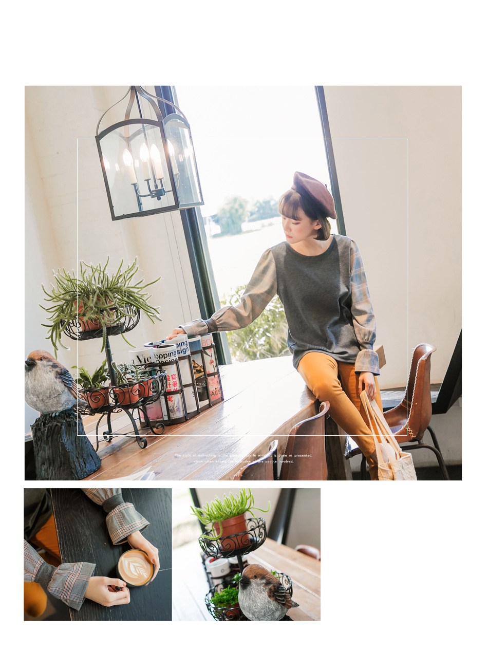 所以(英式拼接格喇叭袖上衣)我相意!!