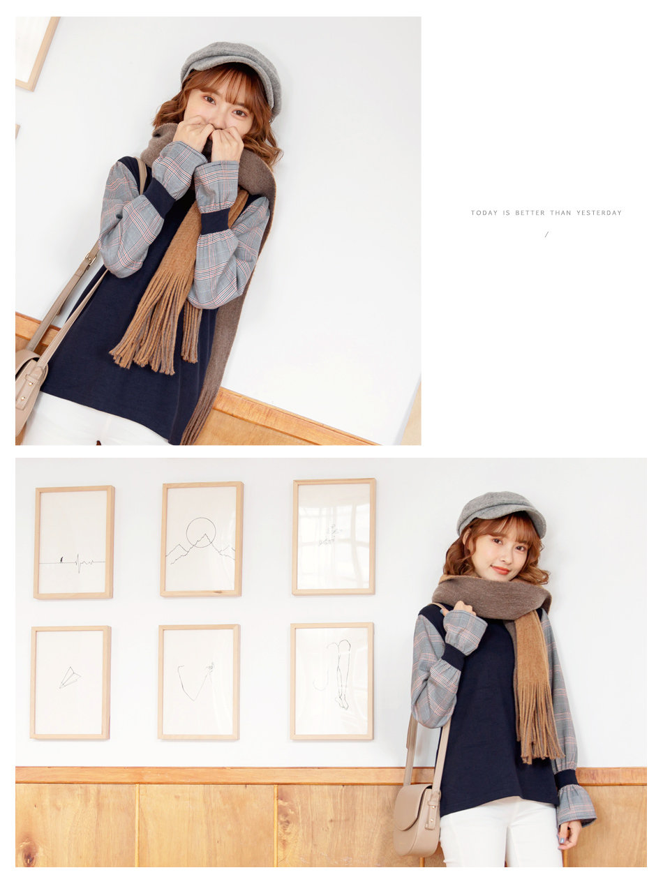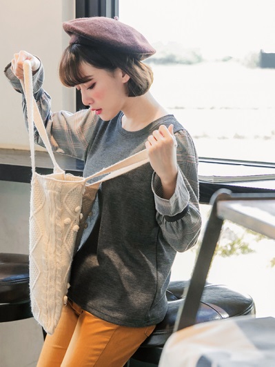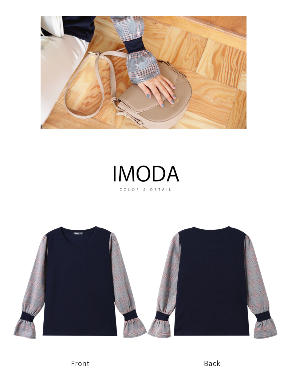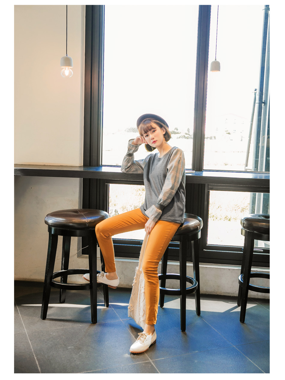 所以(英式拼接格喇叭袖上衣)我相意!!