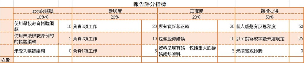 3. 容:(1)分工表(如:封面、插、建google文件、作者介、描