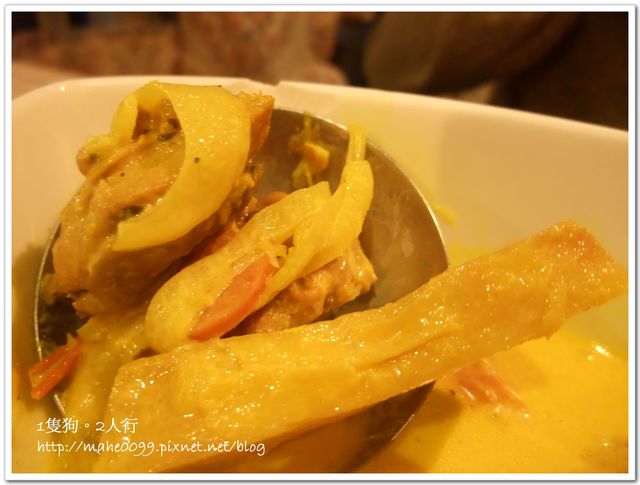 外像咖哩的辛辣感,但汁喝起意外的甜美味、尚有奶香味,喝或配吃皆合!