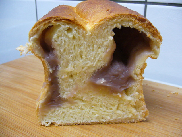 高粉 250g砂 大*2 少蛋*1+奶油 共180ml 或奶+奶油奶油 20g…→以上全放入拌缸酵母粉 小*1…→放入酵母自投入孔:酵母粉功能:……所需大1H模型:12吐司模*1料:芋完成後取出搓揉成型→用刮板切成二份→每份用手出空→整型均抹上芋摺 () 成入吐司模→表面保膜→膨一倍後放入中烤箱 ▲光看外表真是得意………想到自己也可以完成漂亮的吐司 太心了,包太多也不平均,有重心不………得加抹技巧,但吃起真不 ^ ^……