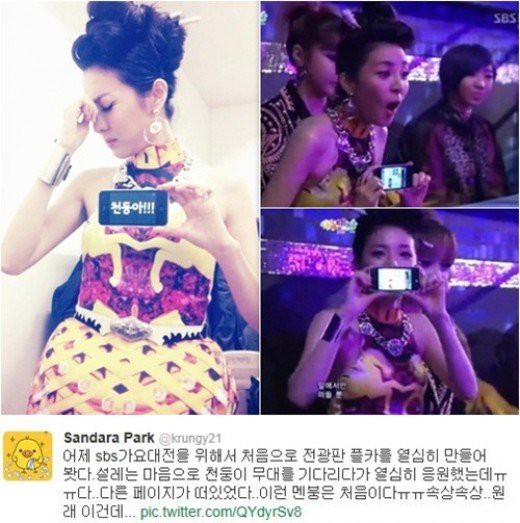 失事件生的去是子, Dara 弟弟天所 MBLAQ 在台上演出,向了 Dara,而她也拿起手公好的援文字要弟弟加油,不因定好,成了另一面。