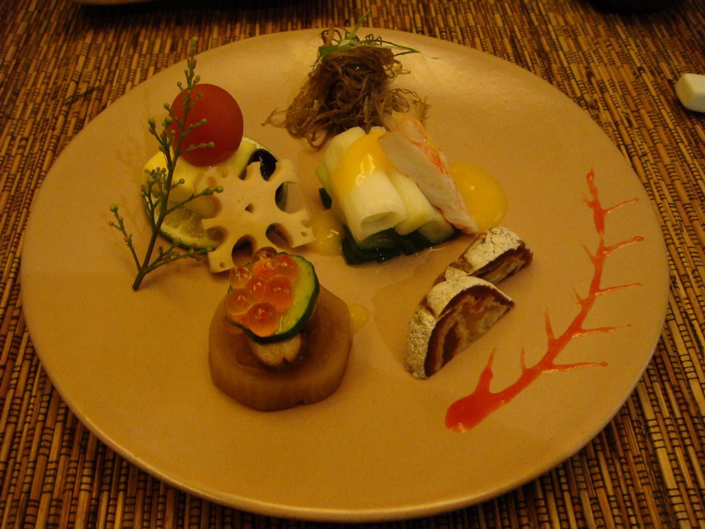 此回「秋料理」套餐都抄菜名,述即可。和沙拉味偏郁,蟹肉略提海味;小菜五有藕、海菜、大配蟹肉味噌、甜、卵大根,有意且不吃,味道富;刺身有、腹、、海,皆新,海能到甜味。