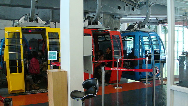 ▲ 於到我啦,一共有三色。「日月潭系有86,外、、三色的分代表日、月、潭的三色,每搭8名乘客,在最快每秒6公尺的速度下,一小量可到3000人次。」