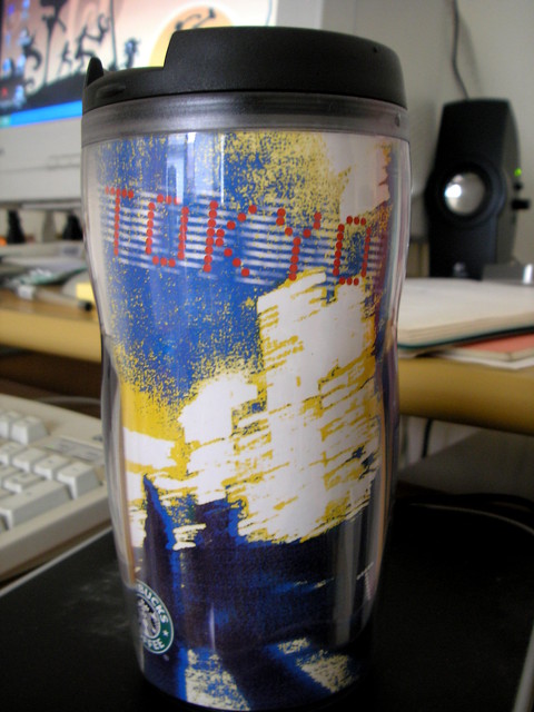 也跑去了星巴克京念杯(它可以免在杯子附店的一咖啡喔)