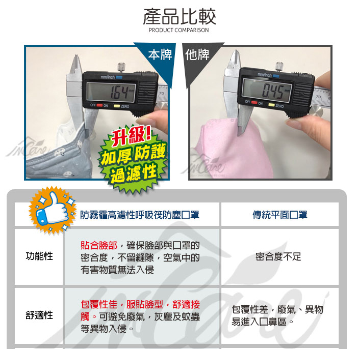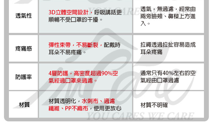 加呼吸筏相於一般市售平面口罩,有著的出去差性,