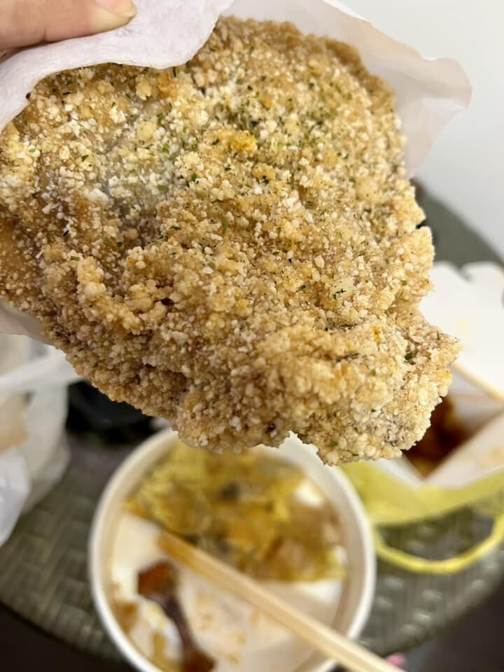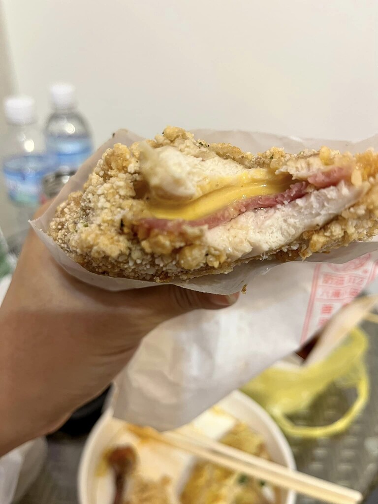 花-大夜市趟地很大人很多,可能是假的有四都有人在表演唱歌(都唱的不)。停半小$50 。一年前的神友因疫情的只有家有所以他就逛,而且他好吃了今天要推的爆排那家的酥,因此他得普普。今天吃了爆排不口~哈哈哈!爆排的肌肉柔嫩不柴,外皮酥但不油 (排都有啦)我回第二次式炸,味微辣不甜面有根年糕也好吃!