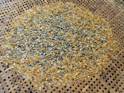 有泡水直接去除果肉,未水洗就乾的生豆。