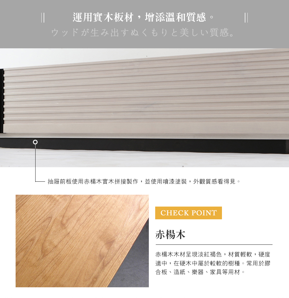 材: 赤木木(抽前板)、化玻璃、MDF板、木皮