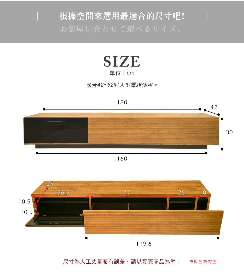 尺寸:省人折券代 180x深42 x高30(位CM) ※位CM,其他尺寸考片